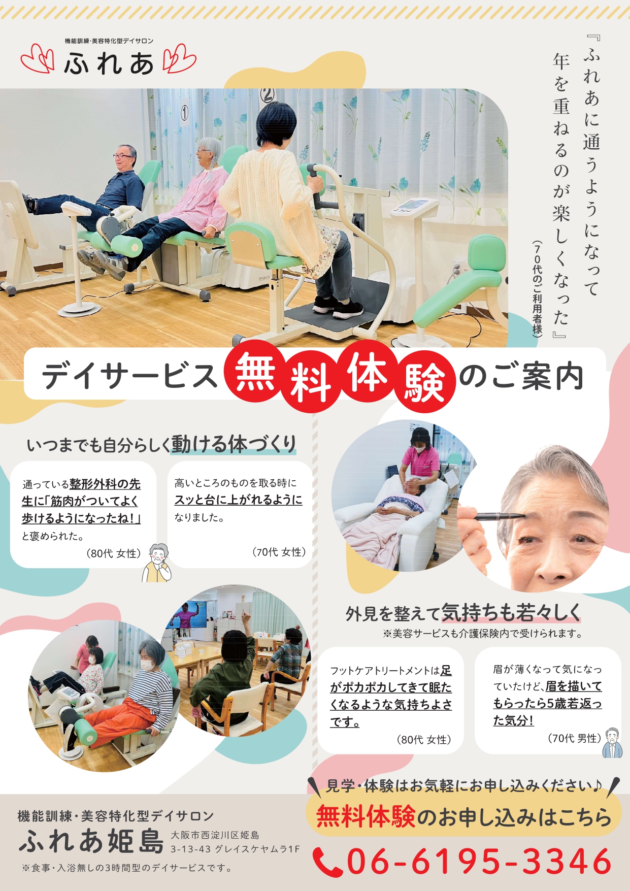 「機能訓練・美容特化型デイサロン ふれあ姫島」では、初めての方に向けた無料体験会を開催しています!